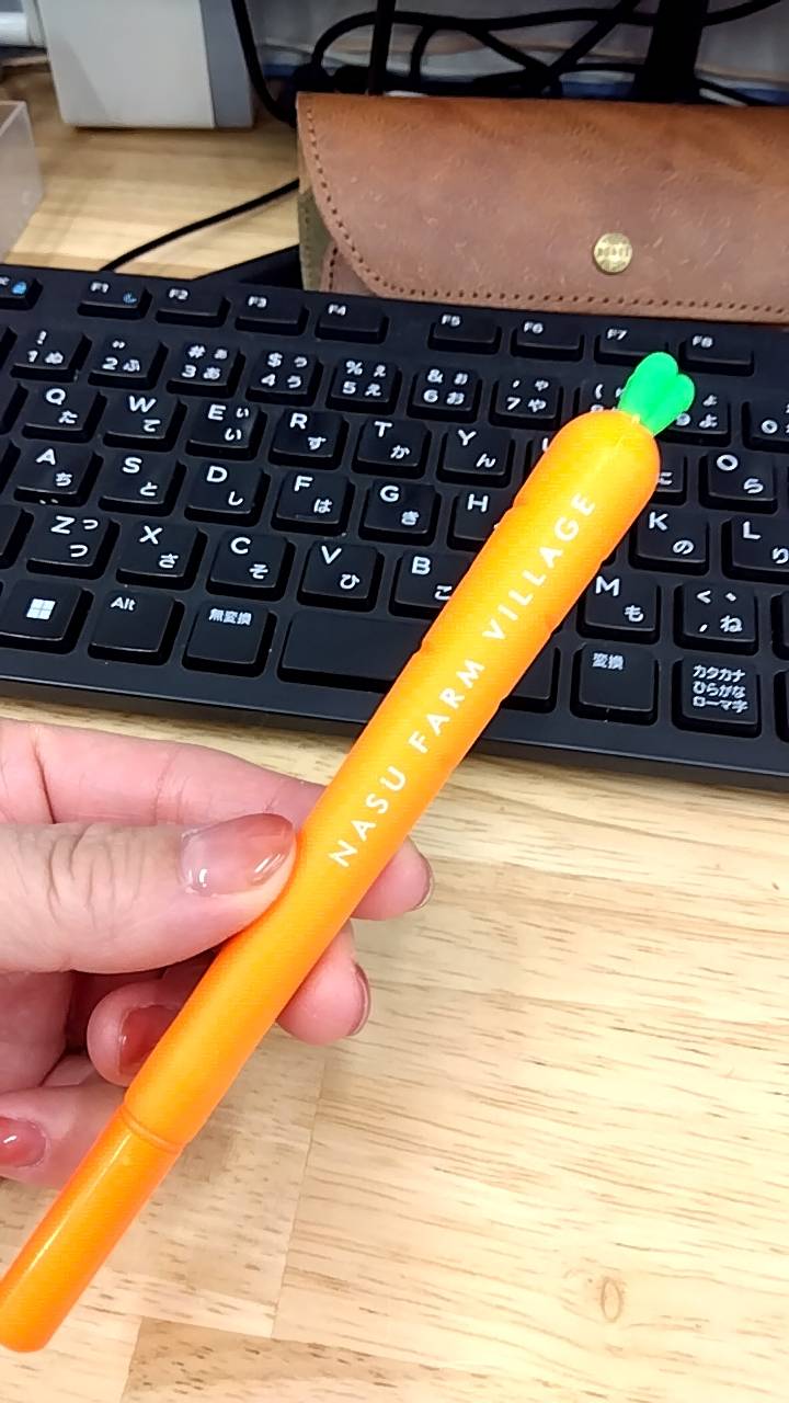 お土産に女性社員お揃いでにんじんのボールペンを!!しかし・・・全然書けない(笑)仲良く3人のデスクに並んでいます(笑)