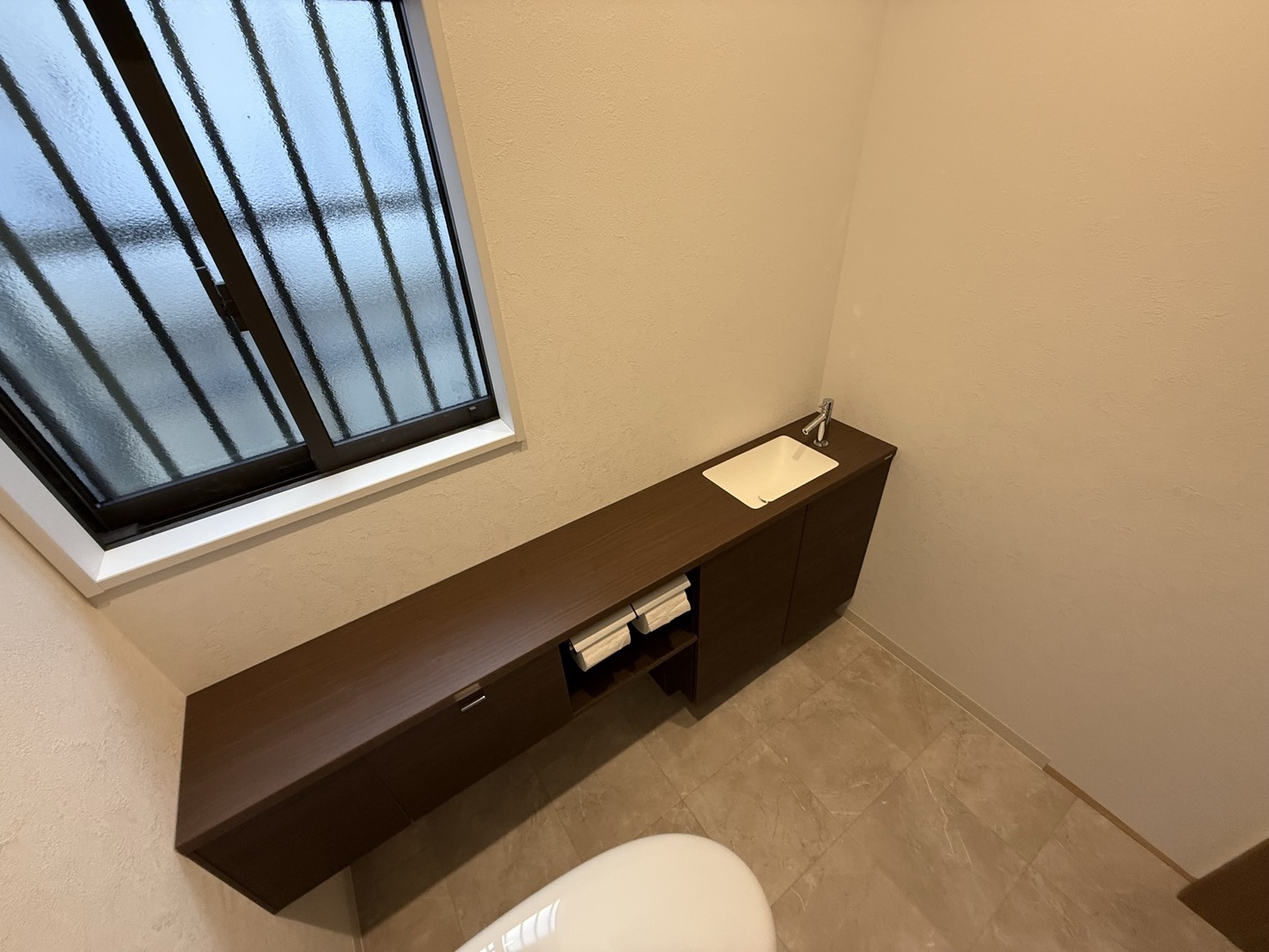 最後に新しい便器と手洗いを設置します。