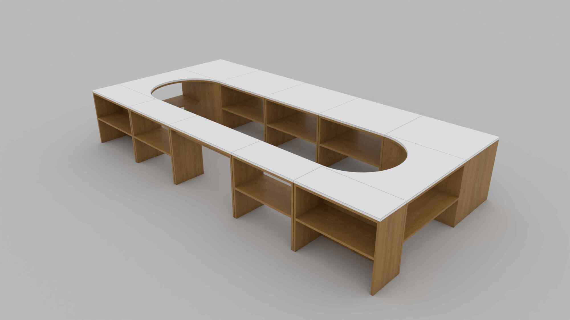 12個の組み合わせで4m×2mほどの大きなテーブルになります。