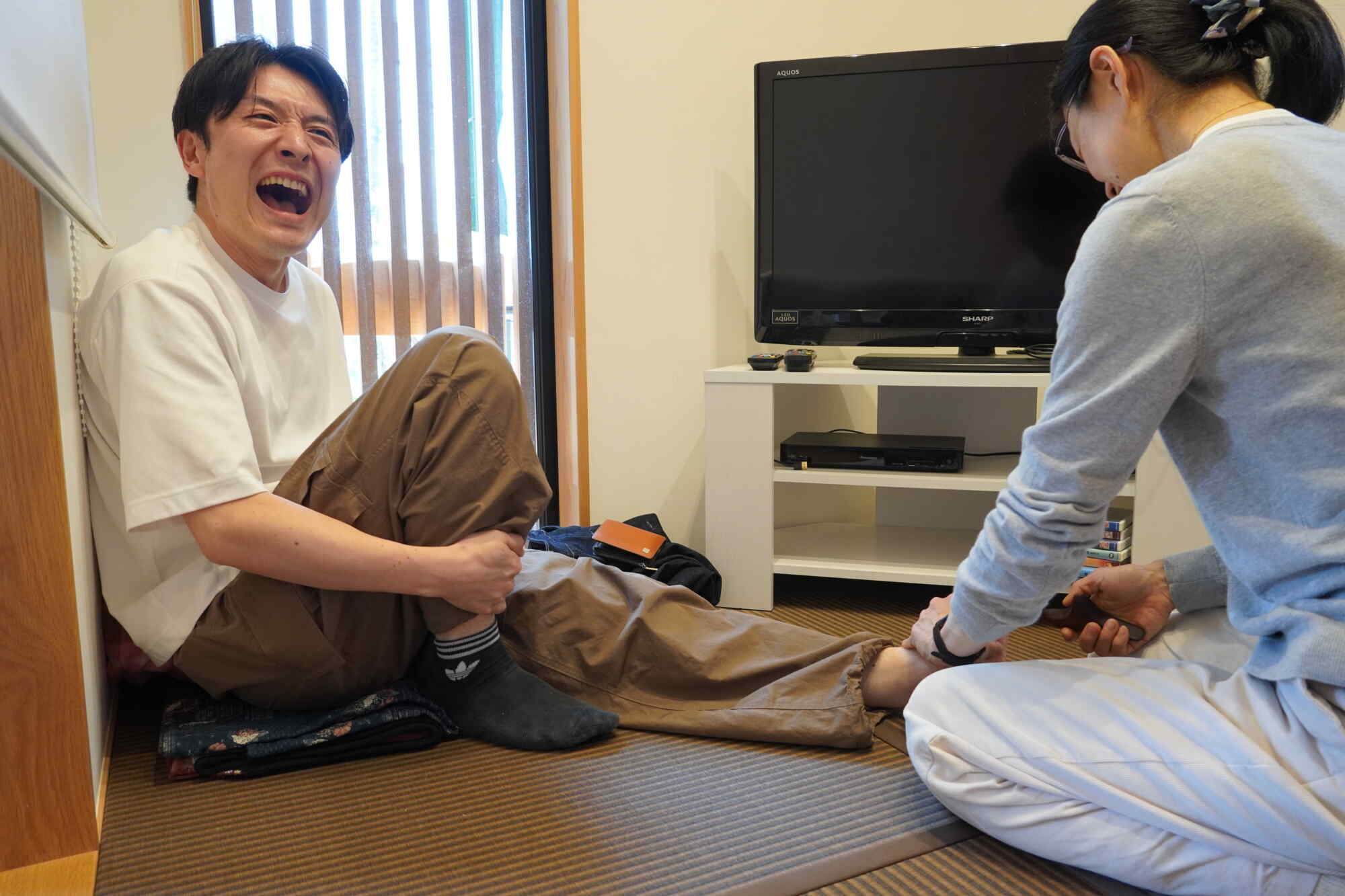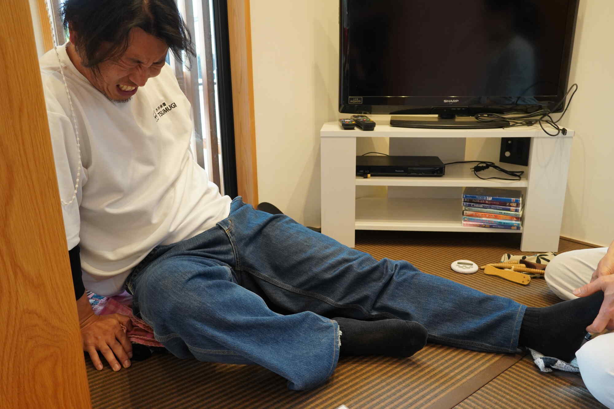 枝久保 麻衣男性陣、足つぼの痛みに悶絶!!<br /> 意外と男性の方が痛みに弱いことが判明(笑)この痛がりようは尋常な痛みではない!<br /> でも施術後はみな「すっきり」「浮いてるみたい」と言ってさわやかな顔でした。<br /> 皆さまも是非体験してみてください!