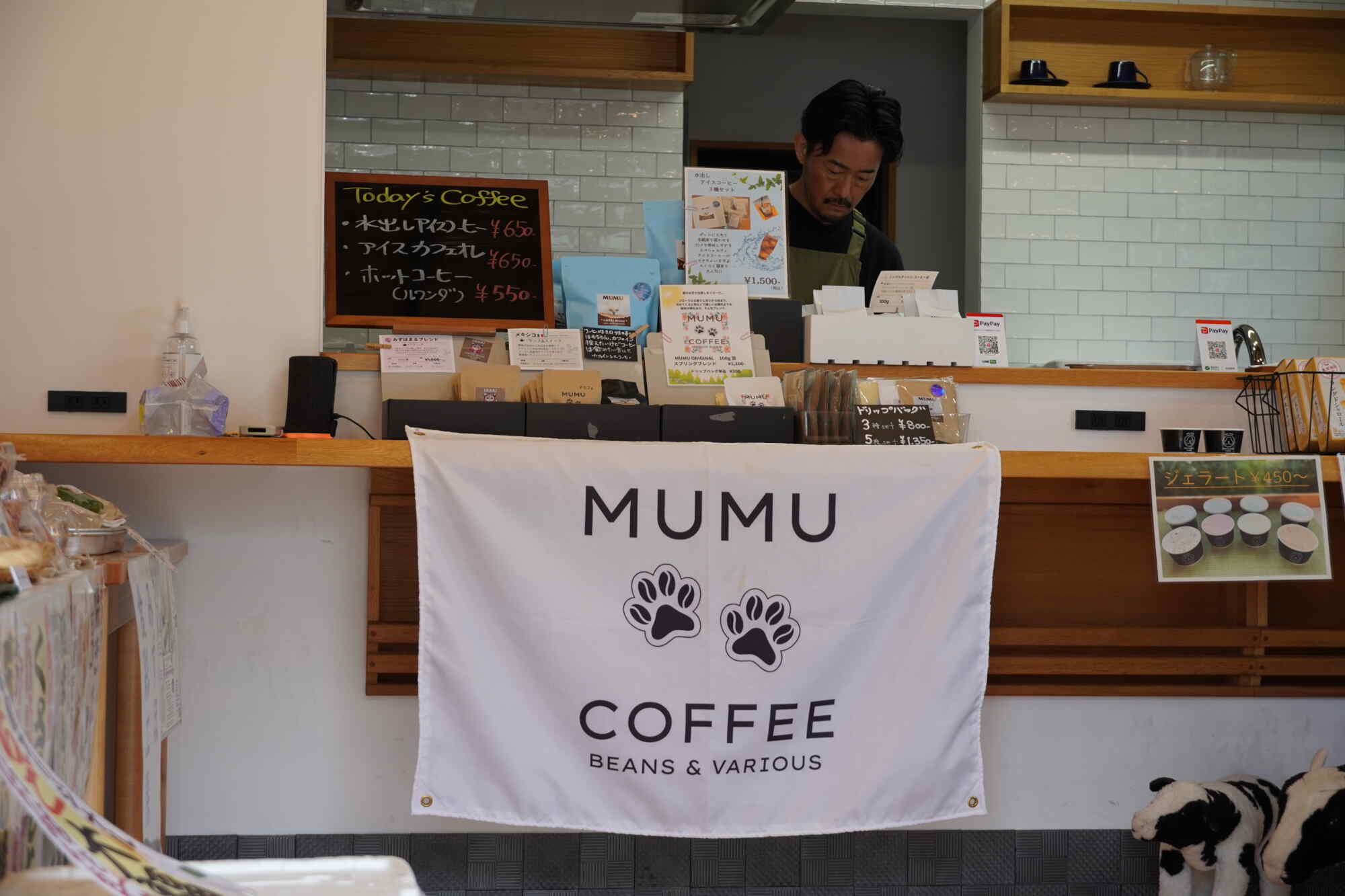 ジェラートを食べるにも、温かいコーヒーを飲むにもちょうど良い、気持ちの良い天気で、スタッフもお互いの商品を購入してホッと一息つけるようなマルシェです。